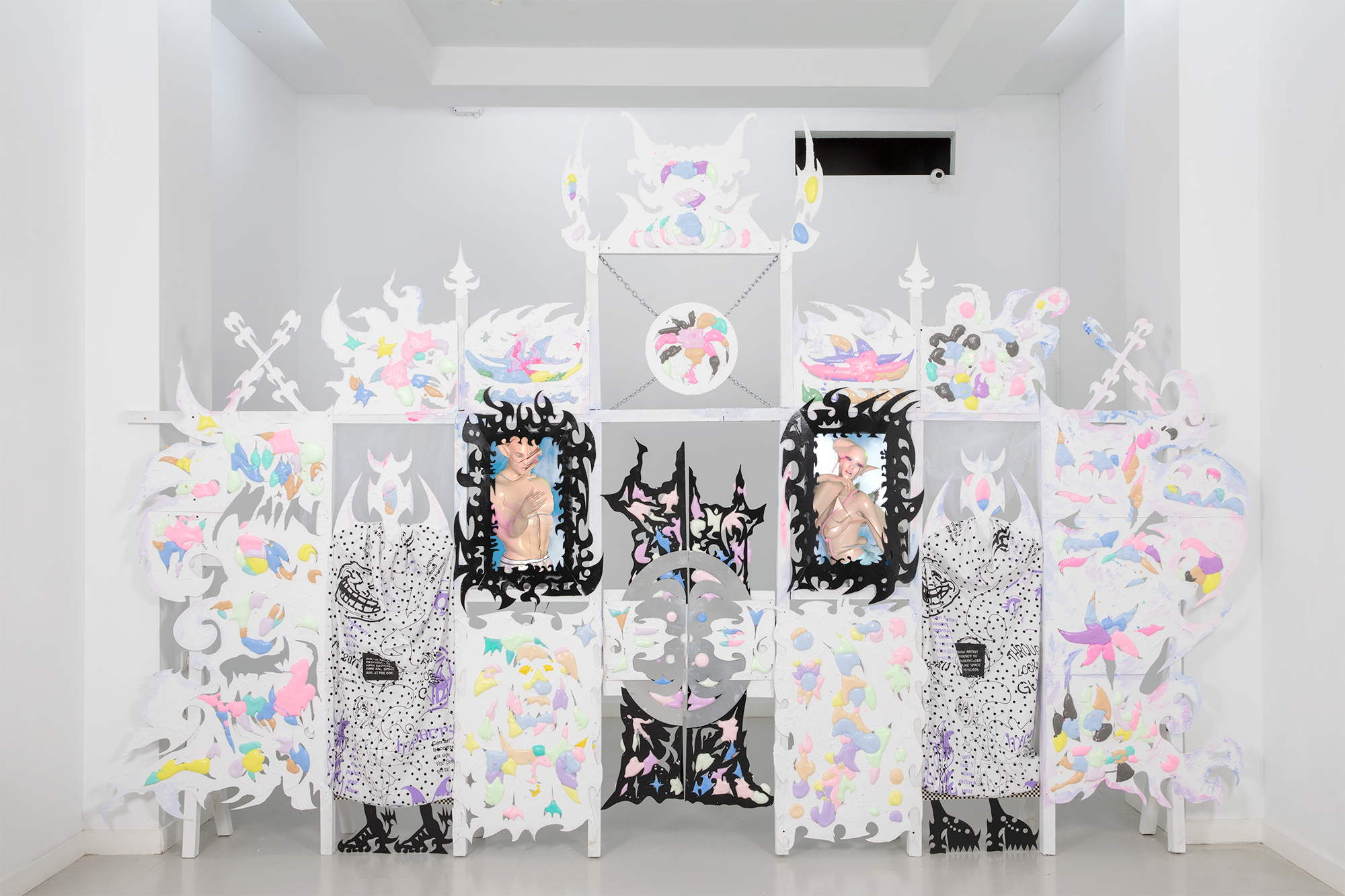 While in the main room we have an installation depicting the modern look of the church of hypocrisy in Katya's improvisation, further the exposition takes us to the mysterious secret chamber of the Holy of Holies, where artists of the same spirit express their idea of what lies behind the hypocrisy with personal, public or a philosophical point of view.
