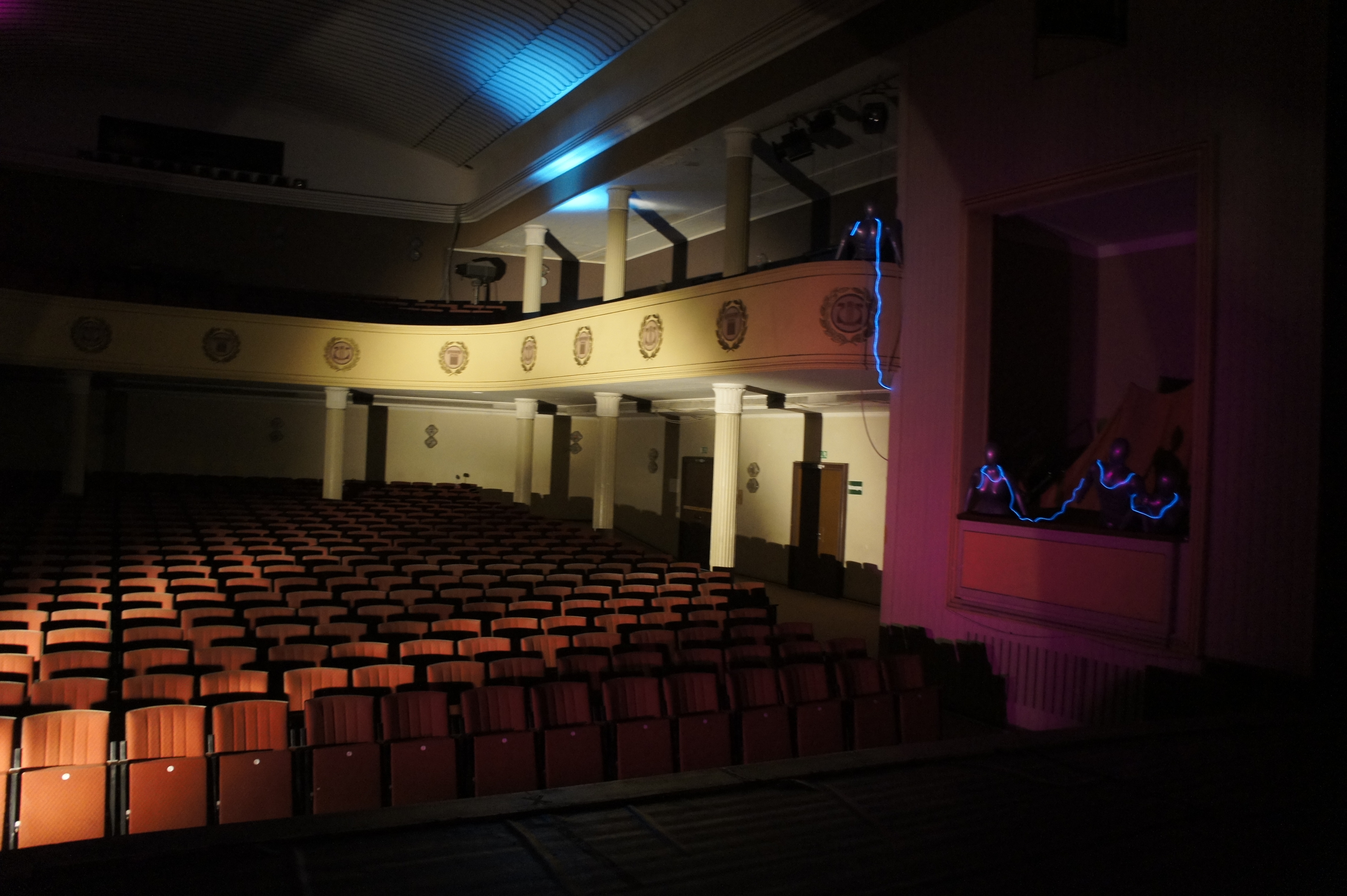 Materials: speakers, inflatable Chinese mannequins, LED-cable, light