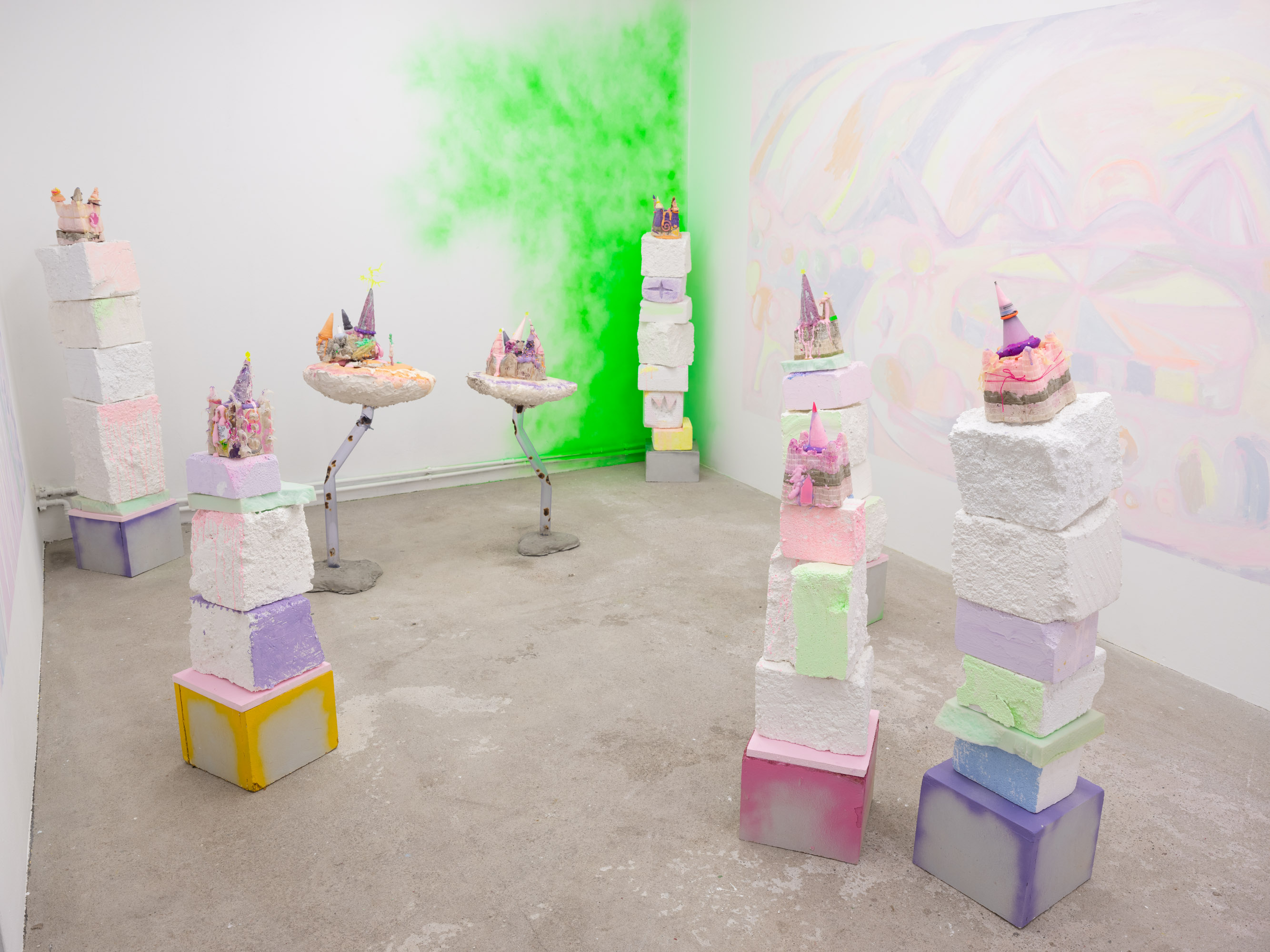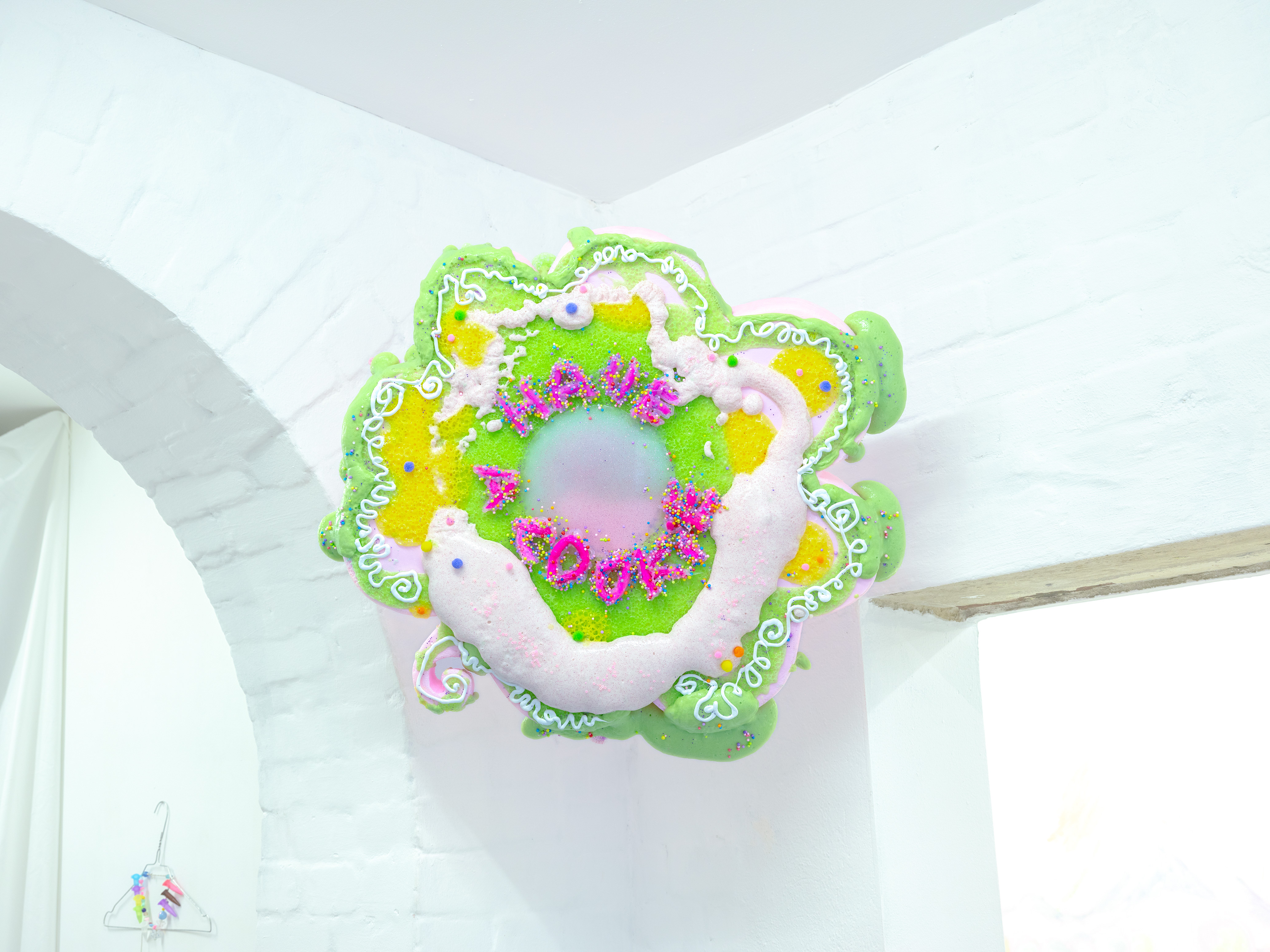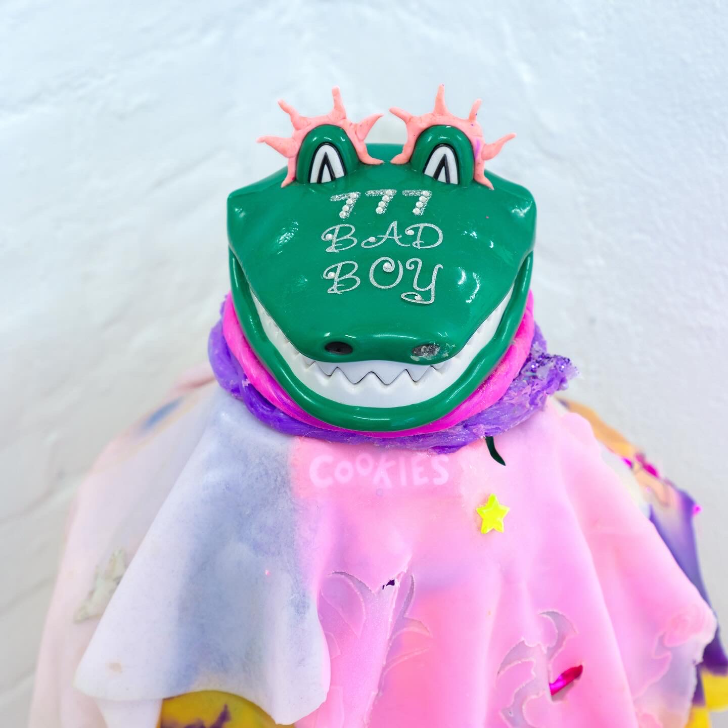 The inspiration for the exhibition was Kingdom Of Milk Rivers and Jelly Shores, a Russian analogue of The Land of Cockaigne, from Russian folklore. Quel often tells metaphorical and fabled narratives through her works. In this exhibition she is teasing us about our most seductive dreams, playing on the notion of The Land of Cockaigne from the Middle Ages as a utopian place where peasants don't work and enjoy all earthly pleasures for free, akin to Bosch's and Bruegel's paintings, and the "luxury" pleasures of today. Excessive consumption, casino winnings, mountains of coke, never-ending parties, sweet pastries, more intoxication. Each object has its hidden humor including the crocodile hiding the cookies of fate (cookie is also slang for crack cocaine)...please open his mouth and help yourself before you leave.