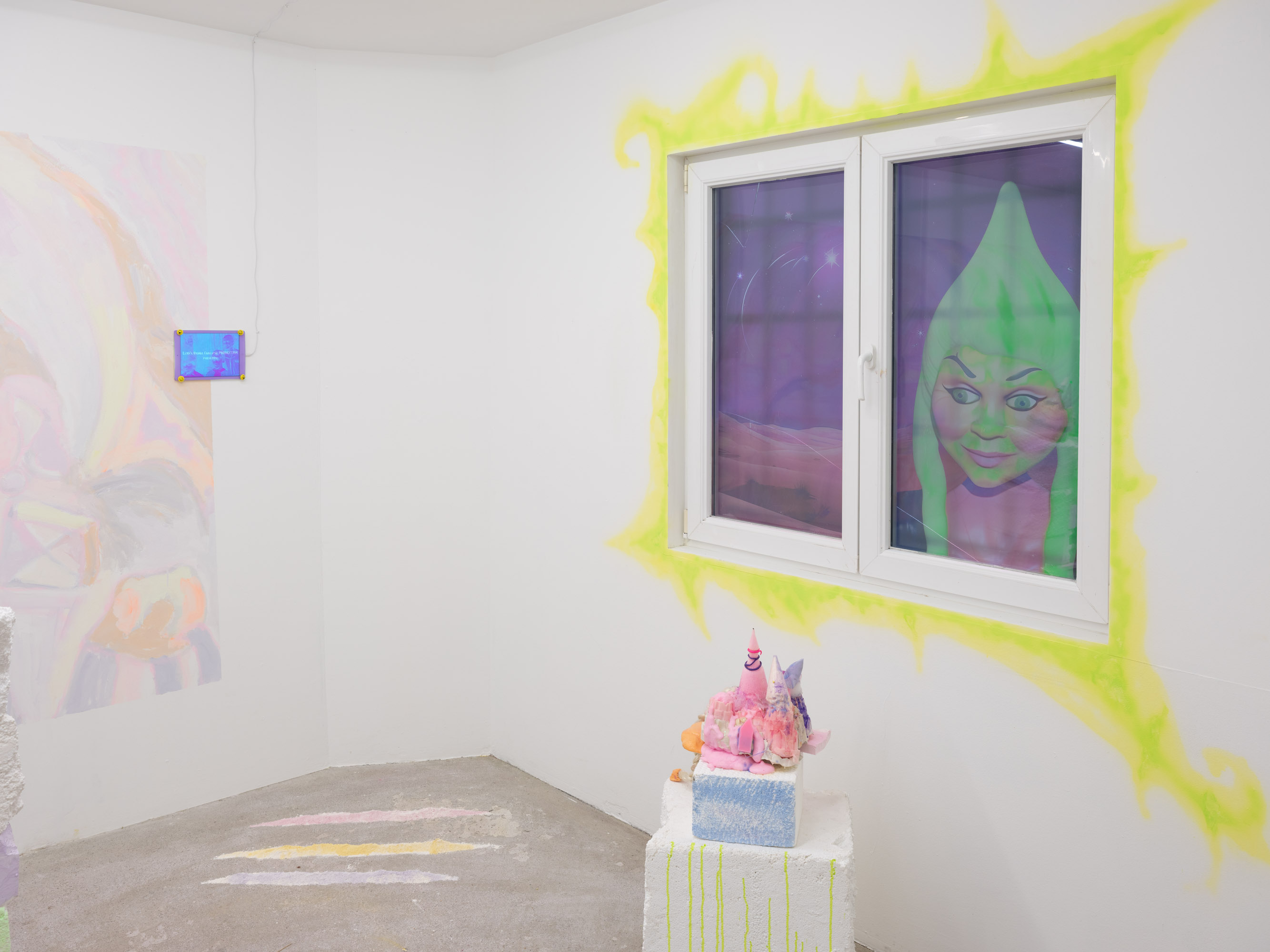 Katya Quel is a Berlin based artist and curator, her colourful multi-media works explores dreamlike romantic narratives. Quel’s practice connects underground and pop culture, nature and technology, words and coloured masses, crafty and conceptual artistic approaches, design and art, realm, and fantasm. Her work aims to create worlds in fairy tales and creatures in universes that aim to surpass the traditional canons and reveal new methods of artistic self-placement rooted in subculture.